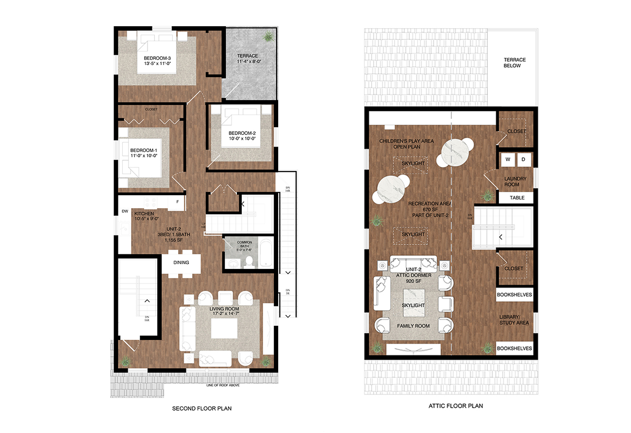 The Design concept accommodates the evolving needs of a family and flexible/ spacious spaces in a continuous layout. The design program adapts for different purposes, such as a home office, play area and guest room, providing versatility for changing family dynamics.High ceilings and minimalistic furnishings enhance the sense of openness.