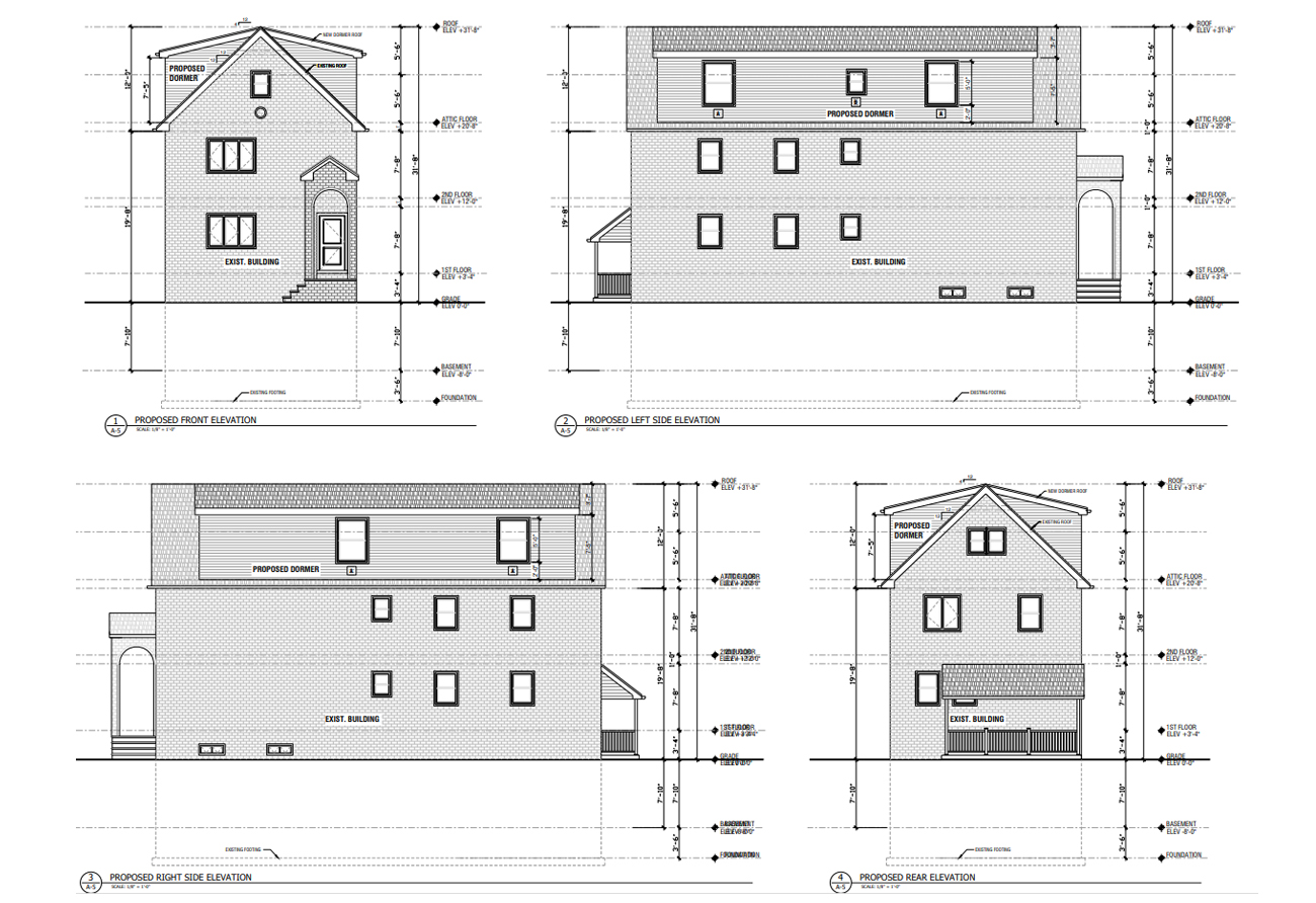 The design concept of dormer addition aims to enhance both the functionality and aesthetics of a space within existing bulk of the house. The new dormer’s roof harmonizes with the main roof, matching pitch, and style. Seamless integration ensures the dormer looks like a natural extension of the existing structure.